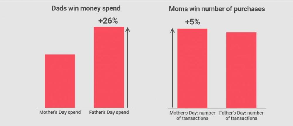 Isadepäev vs emadepäev: kulutuste ja ostude arvu muutus. Allikas: Channelnews